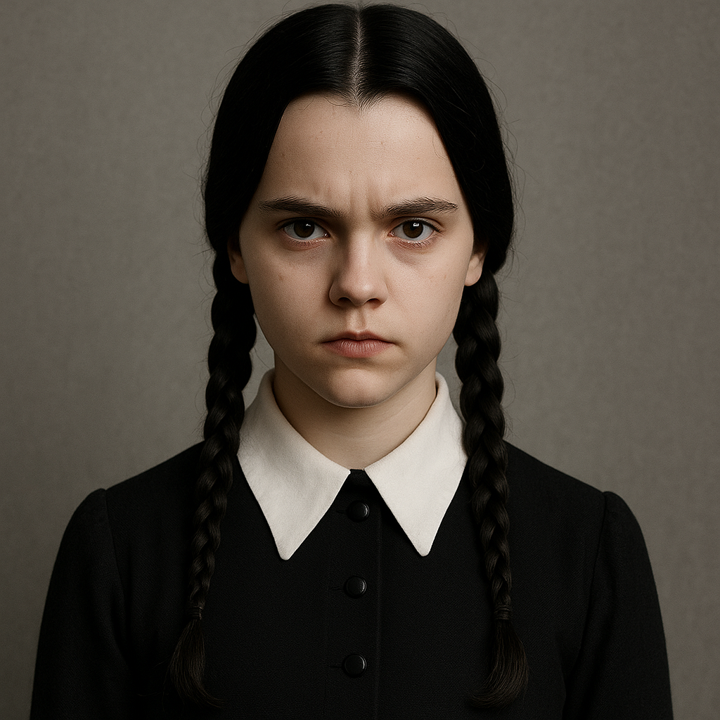 An AI interpretation of Wednesday Addams created with Puppetry.com