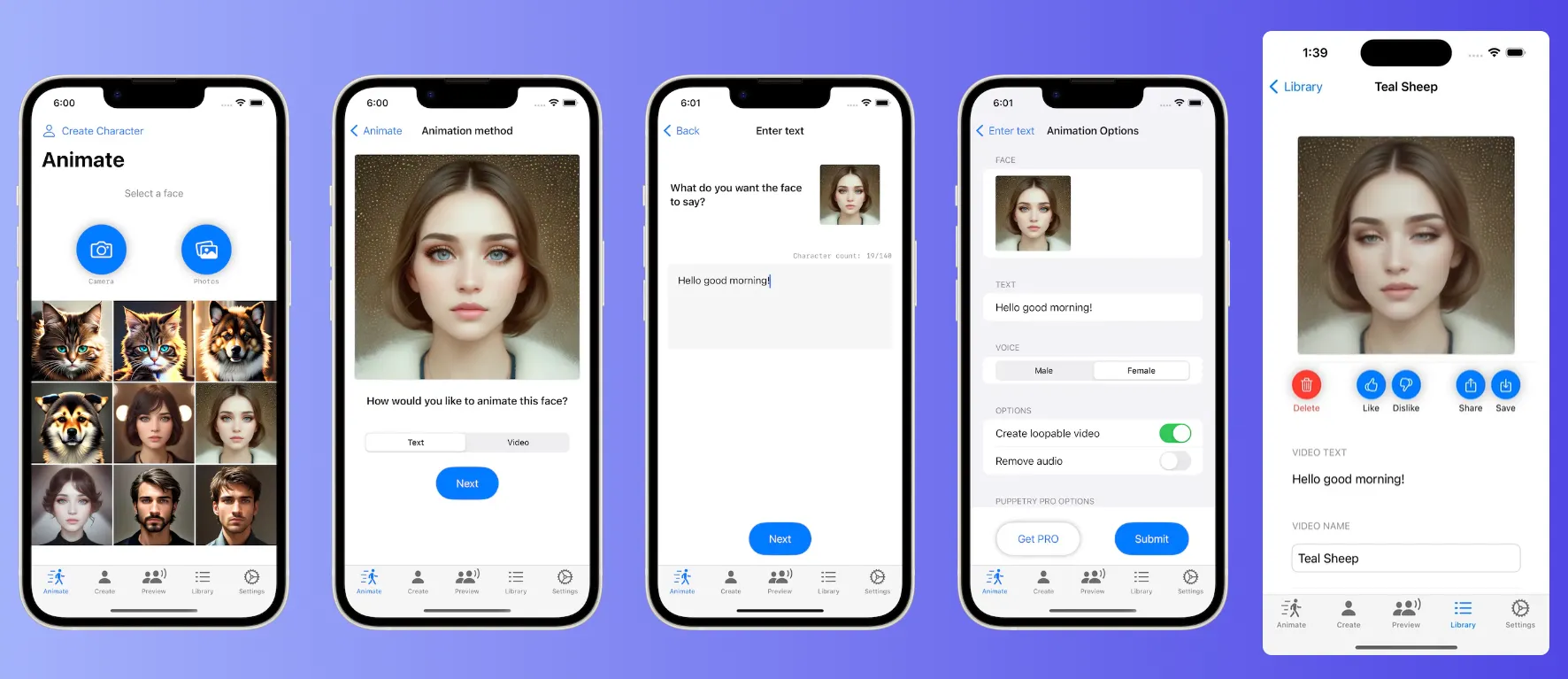 Start with a script, pick a puppet, and share a finished video in minutes. Free to try, no credit card required.
